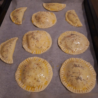 Per quello a mezza luna, consiglio di riempirlo con la crema di broccoli, disponete meno ripieno e poi ripiegate il disco in due formando appunto un mezzo cerchio, schiacciate sempre bene con le dita e poi completate con i rebbi della forchetta.